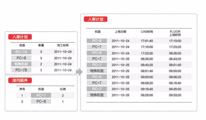 大京機械根據(jù)這些特點,根據(jù)各種生產(chǎn)機型的產(chǎn)量、節(jié)拍,客戶需要的優(yōu)先度,以及生產(chǎn)線的能力,上線的規(guī)則,在系統(tǒng)中把這個規(guī)則導(dǎo)入系統(tǒng),我們的計劃產(chǎn)量出來以后,把這個計劃總數(shù)量導(dǎo)出去以后排成生產(chǎn)計劃,效果非常好。