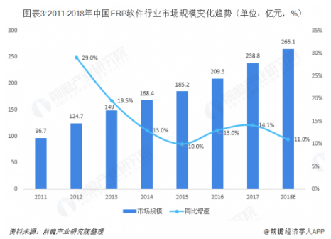 中國市場企業(yè)數(shù)量眾多,近年來在中國經(jīng)濟(jì)轉(zhuǎn)型、中國制造2025等趨勢的推動下,企業(yè)服務(wù)市場,尤其是ERP軟件行業(yè)發(fā)展持續(xù)向好,2010-2018年間市場規(guī)模復(fù)合增速達(dá)15.5%,遠(yuǎn)高于全球增速2.9%。其中云ERP在總的ERP市場份額中占比逐年擴(kuò)大。如果此時你對erp軟件還不太了解,可以查閱《erp系統(tǒng)入門》資料。