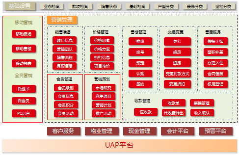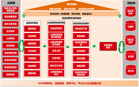 用友地產(chǎn)行業(yè)解決方案用友地產(chǎn)解決方案是用友專為地產(chǎn)企業(yè)開(kāi)發(fā)建設(shè)和商業(yè)經(jīng)營(yíng)提供的行業(yè)性全面信息化解決方案。 用友地產(chǎn)行業(yè)解決方案包括項(xiàng)目投資測(cè)算管理、項(xiàng)目盈利規(guī)劃管理項(xiàng)目成本管理、項(xiàng)目進(jìn)度管理、項(xiàng)目資金計(jì)劃管理、招標(biāo)采購(gòu)管理營(yíng)銷管理、客服管理、基礎(chǔ)物業(yè)管理、商業(yè)運(yùn)營(yíng)管理等基礎(chǔ)業(yè)務(wù)管理模塊;涉及地產(chǎn)企業(yè)集團(tuán)管控、項(xiàng)目全生命周期、客戶全生命周期所有管理體系及功能應(yīng)用,并結(jié)合商業(yè)智能、移動(dòng)辦公、移動(dòng)終端、電子商務(wù)等多種應(yīng)用模式,按照“戰(zhàn)略—預(yù)算—執(zhí)行”的管理思路,幫助地產(chǎn)企業(yè)管理者對(duì)土地、資金、人、產(chǎn)品以及各業(yè)務(wù)流程等項(xiàng)目運(yùn)營(yíng)數(shù)據(jù)進(jìn)行及時(shí)掌控和有效監(jiān)管,實(shí)現(xiàn)財(cái)務(wù)和業(yè)務(wù)信息管理一體化,消除信息孤島,滿足集團(tuán)化地產(chǎn)企業(yè)決策層、管理層和業(yè)務(wù)操作層的信息化需求,以高效的一體化平臺(tái)支撐企業(yè)采購(gòu)電子化、運(yùn)營(yíng)電商化、決策智能化。盈利規(guī)劃管理用友盈利規(guī)劃管理系統(tǒng)依托用友UAP平臺(tái),承接投資測(cè)算系統(tǒng),整合項(xiàng)目過(guò)程中成本、營(yíng)銷、財(cái)務(wù)系統(tǒng)數(shù)據(jù),實(shí)現(xiàn)對(duì)項(xiàng)目盈利的動(dòng)態(tài)跟蹤測(cè)算規(guī)劃、土增稅的測(cè)算及分析,其特點(diǎn)是: • 數(shù)據(jù)支持?jǐn)?shù)據(jù)決策分析:利用與其他系統(tǒng)的高度耦合性,為項(xiàng)目投資決策、動(dòng)態(tài)監(jiān)控提供充分有效的分析數(shù)據(jù)。• 一體化協(xié)同:利用平臺(tái)化公共數(shù)據(jù)管理,減少各業(yè)務(wù)系統(tǒng)間的耦合度;• 規(guī)范編報(bào)過(guò)程:統(tǒng)一模型樣式,固化數(shù)據(jù)邏輯,規(guī)范編報(bào)過(guò)程;• 過(guò)程跟蹤管理:實(shí)現(xiàn)對(duì)編報(bào)過(guò)程的整體跟蹤;• 數(shù)據(jù)同步共享:打通業(yè)務(wù)系統(tǒng)信息壁壘,實(shí)現(xiàn)財(cái)務(wù)與數(shù)據(jù)共享;項(xiàng)目進(jìn)度管理用友進(jìn)度管理系統(tǒng),以分級(jí)計(jì)劃管理體系為理論基礎(chǔ),幫助地產(chǎn)企業(yè)構(gòu)建集團(tuán)、區(qū)域公司、城市公司、項(xiàng)目的多層級(jí)、多樣化的計(jì)劃管理體系;通過(guò)系統(tǒng),集團(tuán)可對(duì)各下屬單位的計(jì)劃進(jìn)行分層級(jí)管理,明確計(jì)劃管理和控制的重點(diǎn),在集團(tuán)內(nèi)部形成計(jì)劃完成的統(tǒng)一標(biāo)準(zhǔn),從而實(shí)現(xiàn)跨區(qū)域多項(xiàng)目計(jì)劃管理模式的快速?gòu)?fù)制;通過(guò)成果管理體系和會(huì)議管理體系,將各項(xiàng)目開(kāi)發(fā)過(guò)程中產(chǎn)生的關(guān)鍵成果匯集到統(tǒng)一的知識(shí)庫(kù)中,實(shí)現(xiàn)全公司共享;集團(tuán)各層級(jí)負(fù)責(zé)人能通過(guò)系統(tǒng)及時(shí)掌握各項(xiàng)目節(jié)點(diǎn)的完成情況,并依此對(duì)員工進(jìn)行績(jī)效評(píng)估,并及時(shí)對(duì)計(jì)劃進(jìn)行調(diào)整和糾偏;集團(tuán)領(lǐng)導(dǎo)通過(guò)系統(tǒng)對(duì)項(xiàng)目設(shè)計(jì)、開(kāi)竣工、銷售、資金回籠等計(jì)劃的整體節(jié)奏把控,保障項(xiàng)目經(jīng)營(yíng)目標(biāo)達(dá)成。 項(xiàng)目成本管理成本管理,即“花費(fèi)最合適的錢(qián),成就最合適的事”。企業(yè)管理者必須善于從經(jīng)營(yíng)的角度,而非僅僅是財(cái)務(wù)的角度,思考并理解“成本管理”思考“夠不夠”、“值不值”,既要做到著眼全面、流程嚴(yán)謹(jǐn)、控制嚴(yán)格、杜絕浪費(fèi),也要防止一味省錢(qián)、降低品質(zhì)。用友成本管理系統(tǒng)融合業(yè)內(nèi)眾多優(yōu)秀地產(chǎn)企業(yè)的成本管理精華,以目標(biāo)成本體系、動(dòng)態(tài)成本控制體系、成本責(zé)任和考核體系、后評(píng)估體系為理論基礎(chǔ),建立“目標(biāo)成本—資源規(guī)劃—招標(biāo)采購(gòu)—?jiǎng)討B(tài)成本—成本后評(píng)估—成本數(shù)據(jù)庫(kù)”的成本閉環(huán)管理。通過(guò)信息化平臺(tái),使各專業(yè)、各部門(mén)緊緊圍繞項(xiàng)目開(kāi)發(fā)計(jì)劃和成本管理目標(biāo),高效協(xié)同,密切配合,確保項(xiàng)目總體目標(biāo)的達(dá)成。采購(gòu)招標(biāo)管理用友招標(biāo)采購(gòu)管理系統(tǒng)由采購(gòu)計(jì)劃管理、招標(biāo)過(guò)程管理、供應(yīng)商管理網(wǎng)上招標(biāo)門(mén)戶等模塊組成。通過(guò)信息化手段,幫助企業(yè)建立集團(tuán)級(jí)的供應(yīng)商管理平臺(tái),實(shí)現(xiàn)供應(yīng)商的信息管理、認(rèn)證、供應(yīng)商的評(píng)估和黑名單機(jī)制,使供應(yīng)商管理更加科學(xué)、合理;通過(guò)對(duì)招標(biāo)過(guò)程的梳理,規(guī)范企業(yè)招標(biāo)制度和標(biāo)準(zhǔn),實(shí)現(xiàn)采購(gòu)過(guò)程的可視化,減少招標(biāo)采購(gòu)漏洞,集團(tuán)領(lǐng)導(dǎo)可以隨時(shí)獲知各項(xiàng)目